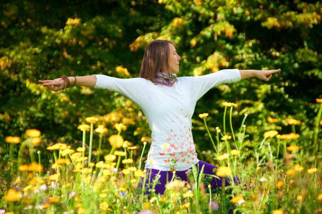 Eingebettet in schöne Natur, die zu Spaziergängen einlädt kannst Du Abstand vom Alltag bekommen, abschalten und dich ganz auf Yoga und Deinen Prozess konzentrieren.